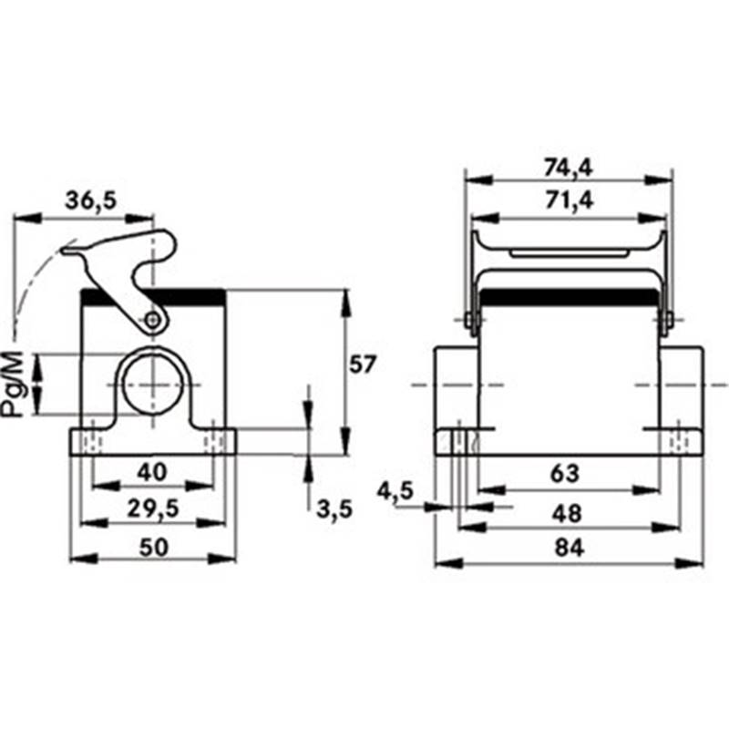 Boîtier H-A: embase en saillie (1 entrée de câble, simple levier); Dimension M: 20; Matériau: - Boîtier: Alliage aluminium gris- Levier: Acier zingué- Joint: NBR; Indice de protection: IP 65 (verrouillé); Plage de température: -40°C à + 110°C, pointe +125°C; Homologations-Normes: CE / cRUus / Testé VDE; Pièces / conditionnement: 5; Série: EPIC® H-A 10 SGR-LB