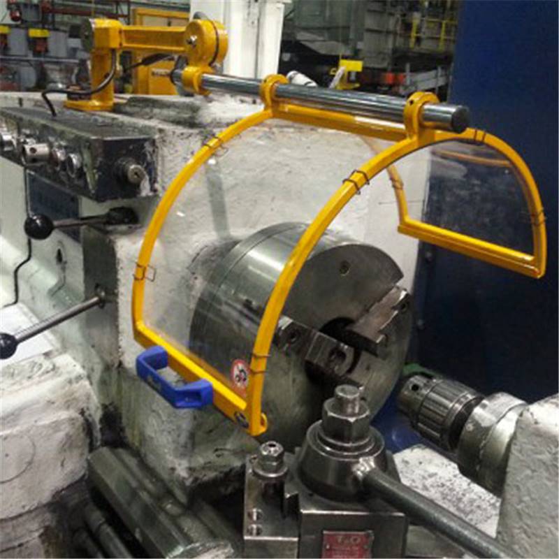 Protection de tour en polycarbonate avec châssis en acier avec relevage vertical du bras muni d’un microrupteur et ressort à gaz. Réglable en hauteur et en largeur.; Ecran: Ø 300 mm largeur 240 mm