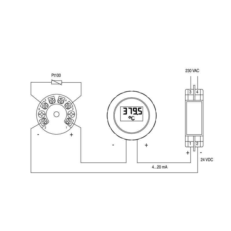 • Signal de sortie: 4 … 20 mA , 2 conducteurs