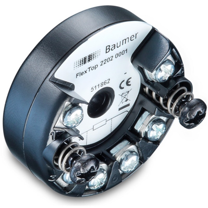 Transmetteur de température; Type: Pt100 entrée / 4-20 mA sortie; Sécurité: Standard; Signal de sortie: 4 … 20 mA , 2 conducteurs; Alimentation: 8 … 35 V DC; Dimensions: ø44 x 19 mm; Montage en boîtier: DIN Forme B; Degré de protection: IP40 (EN 60529); Série: FlexTop 2202