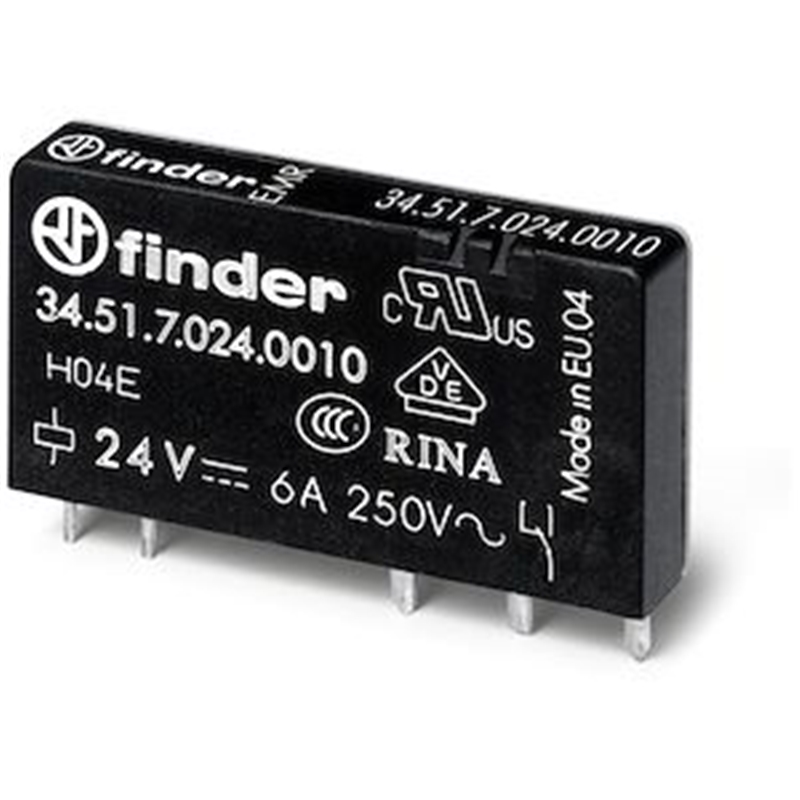 Relais circuit imprimé 1RT 6A 60V DC version sensible, matériau des contacts AgNI, faible épaisseur de 5mm, embrochable sur support série 93