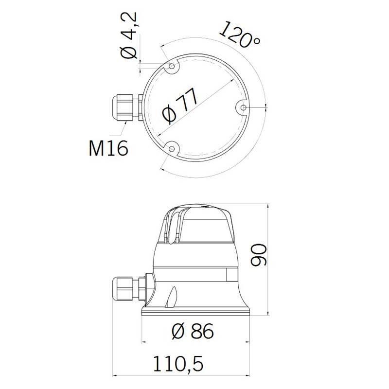 Signalisation machine; Feu à leds; Couleur du dôme: cristal; Effet lumineux: feu fixe/clignotant; Degré de protection: IP54; Tension d'alimentation: V48ACDC ; Couleur de la base: grise