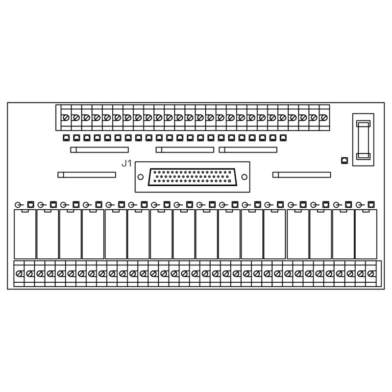 Module pour CN FANUC; Entrées: 24; Sorties: 16 Relais 12 A soc; Connecteur: Sub-D fem. 50 voies; Dimensions: 232 x 118 x 57 mm