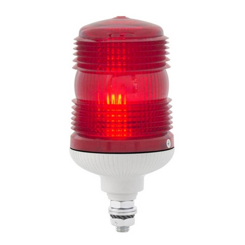 Feu de taille moyenne conçu pour applications industrielles; Feu à leds; Couleur du dôme: rouge; Effet lumineux: fixe/clignotant; Base de fixation de type P (hampe); Degré de protection: IP54; Tension d'alimentation: V240AC; Couleur de la base: grise