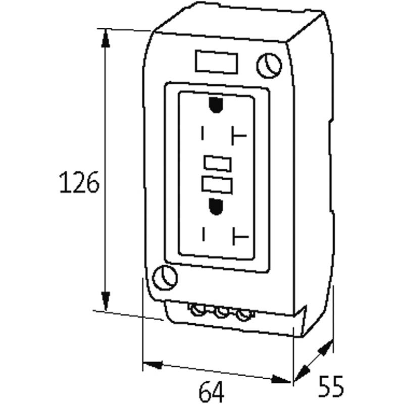 Modlink MSVD Prise de courant USA avec LED jaune 2x NEMA 5-15R (GFCI)/125VAC/15A; Déclenchement sur courant de défaut: 4...6 mA; Mode de fixation: à enclipser sur rail DIN (EN 60715); Type de raccordement: Bornes à vis: max. 6 mm²; Dimensions H × L × P: 126×64×55 mm