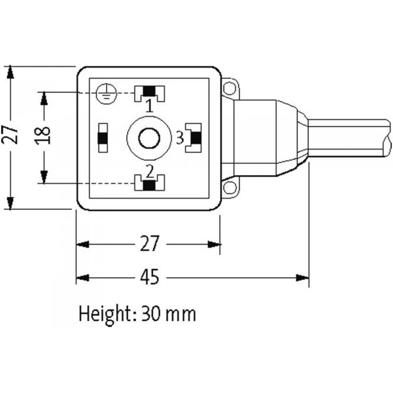 Connecteur pour électrovannes; Forme A 18mm 24Vdc LED; Câble PVC 5x0,75 Noir 1,5m