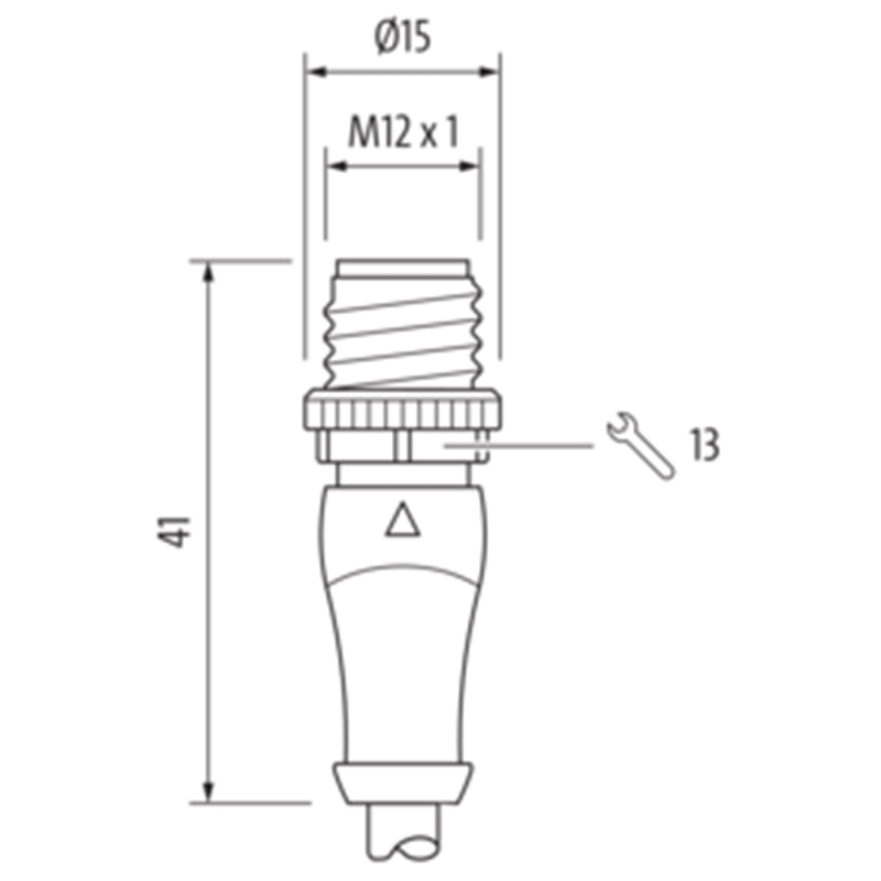 • Raccordement B: Connecteur M12, mâle, droit, 4 pôles, codé A