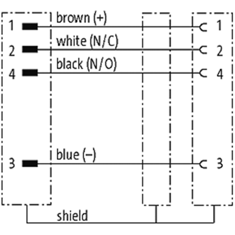 Connecteur / Cable de raccordement; Type: Câble de connexion, M12 x 1 / M12 x 1; Raccordement A: Connecteur M12, femelle, droit, 4 pôles, codé-A; Raccordement B: Connecteur M12, mâle, droit, 4 pôles, codé-A; Câble: 1,00 m, PUR, 4 fils (4 x 0,34 mm², gris; Blindage: Blindé; Compatible chaines porte-câbles: Oui (0.1 Mio. @ 25 °C); Matériau verrouillage: Zinc moulé, nickelé; Tension de service: 60 VAC / 60 VDC; Courant de service max. par contact: 4 A; Indice de protection: IP67, IP65 (EN CEI 60529); Température de service: -30 °C ... 85 °C; Température de service: (statique): -30 °C ... 80 °C; Température de service: (dynamique): -5 °C ... 70 °C
