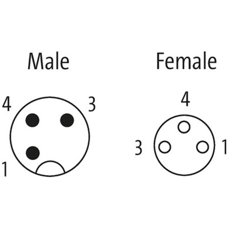 • Connecteur M8-A femelle coudé 3 pôles/Connecteur M12-A mâle droit 3 pôles