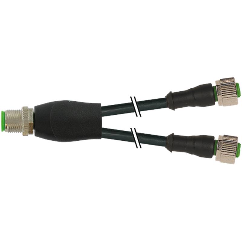 Câble de connexion, en Y; Connecteur M12-A mâle droit 4 pôles/2x Connecteurs M12-A femelle droit; Câble PUR 3x0,34 Noir 1m