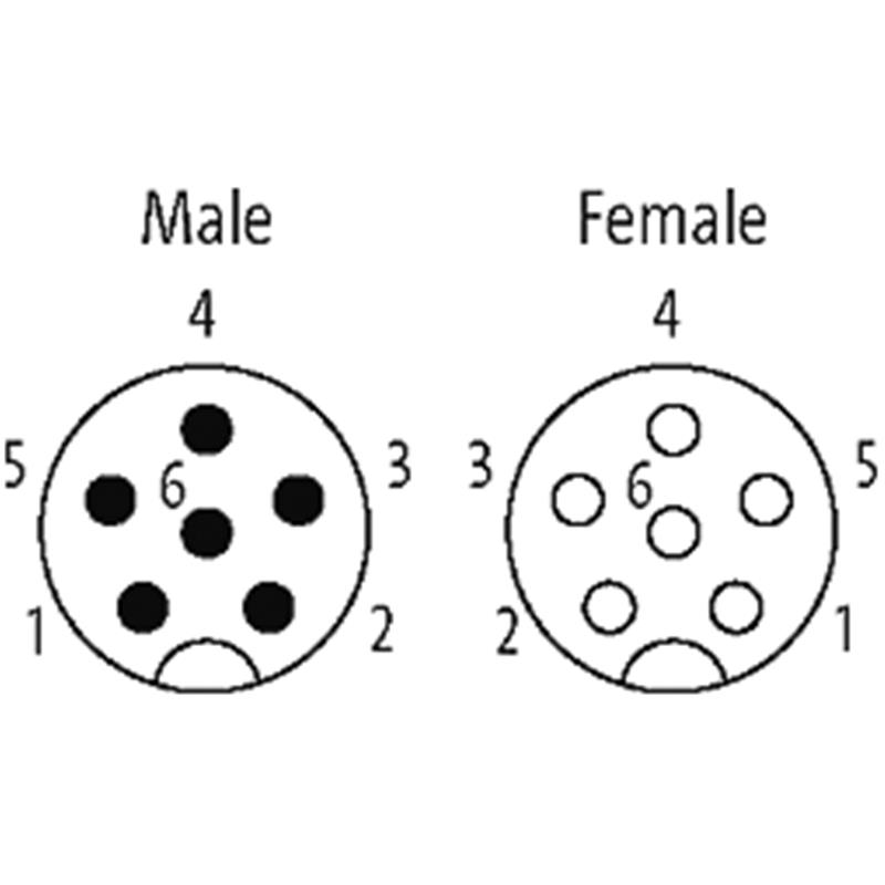 • Raccordement B: Connecteur M12 mâle, droit, 6 pôles
