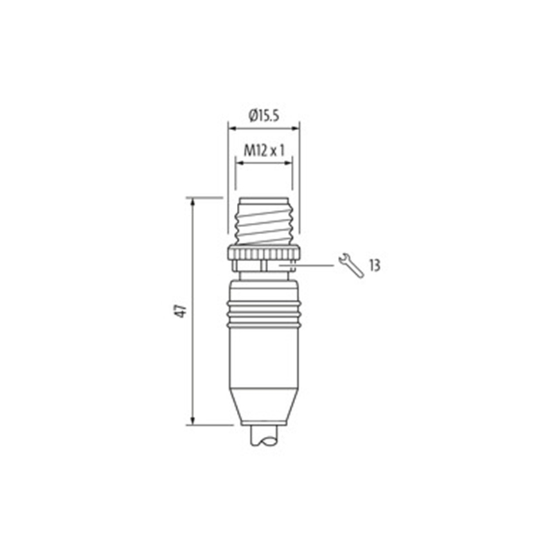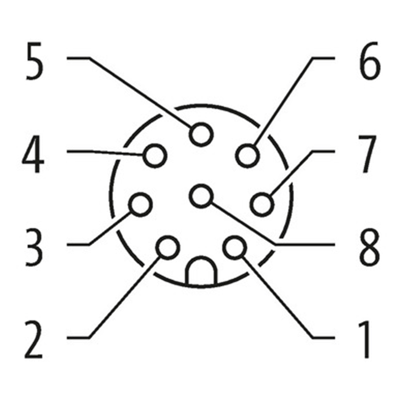 • Raccordement B: Connecteur M12, mâle, droit, 8 pôles, codé-A
