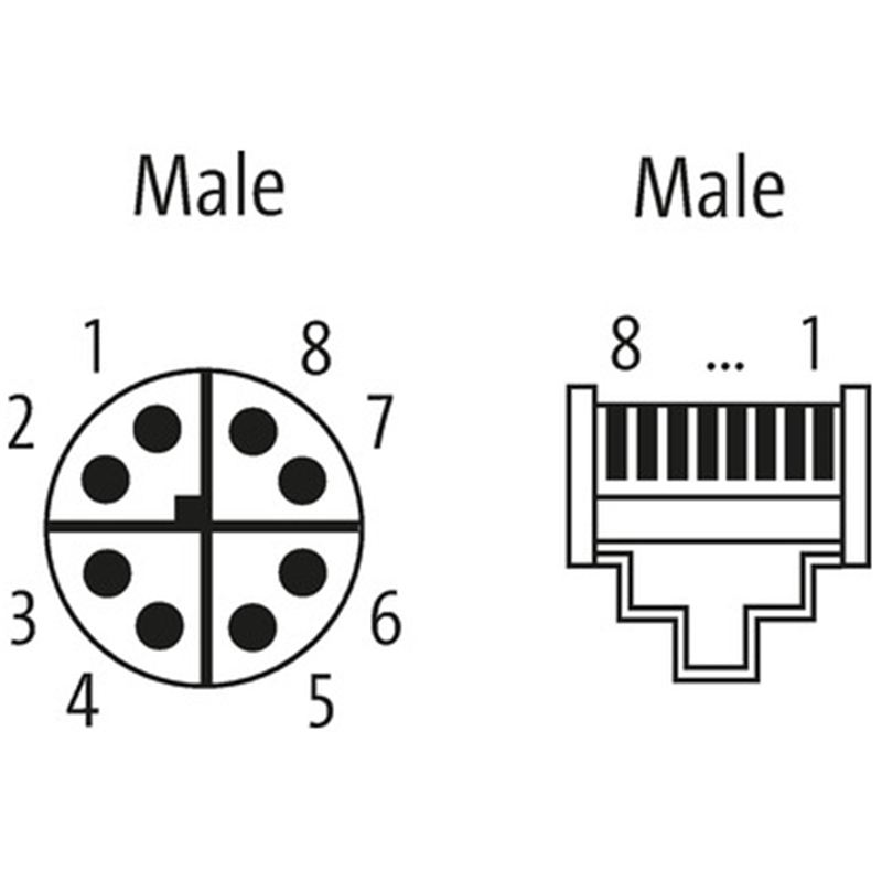 Câble de connexion Ethernet, M12 x 1 (X) / RJ45