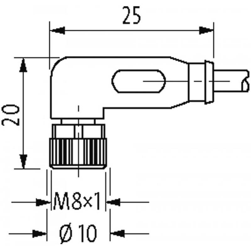 • Raccordement A: Connecteur M8, femelle, coudé, 3 pôles
