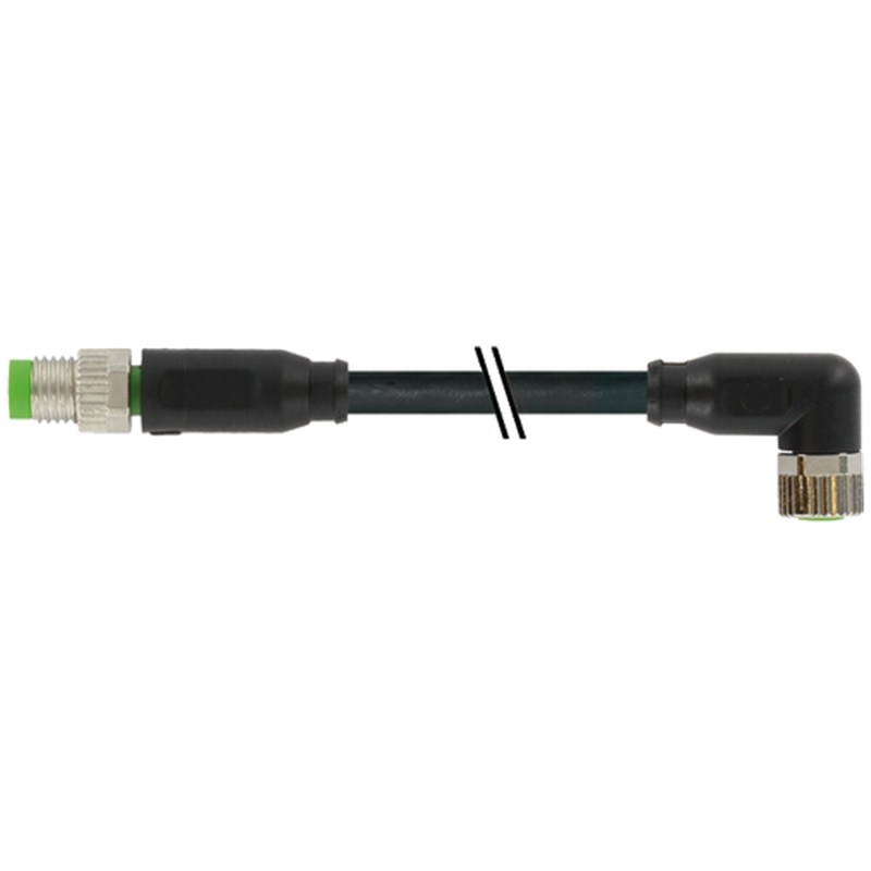 Connecteur / Câble de raccordement; Connecteur M8x1-A, femelle, coudé, 3 pôles / Connecteur M8-A, mâle , droit, 3 pôles; Câble 1.5m, PUR, 3x0.25 mm², noir, compatible chaines portes-câbles