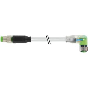 Câble de liaison; Connecteur M8-A femelle coudé 3 pôles LED/Connecteur M8-A mâle droit 3 pôles; Câble PUR 3x0.25 Gris 0.3m
