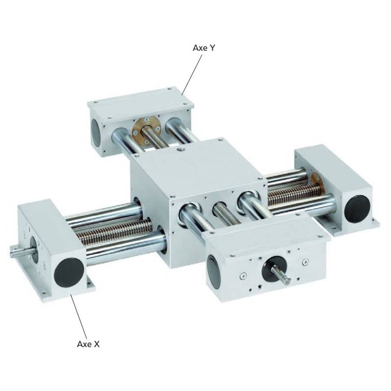 Unité linéaire COPAS croisée TR-K 40; Vis Tr 20x4 pas à gauche - 2 tourillons guidage par douilles à billes; Axe X: course 50 mm; longueur hors-tout 434 mm; Axe Y: course 50 mm; longueur hors-tout 434 mm