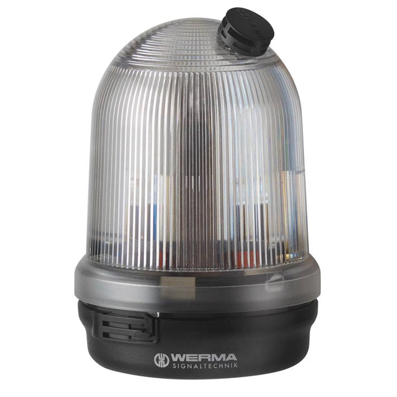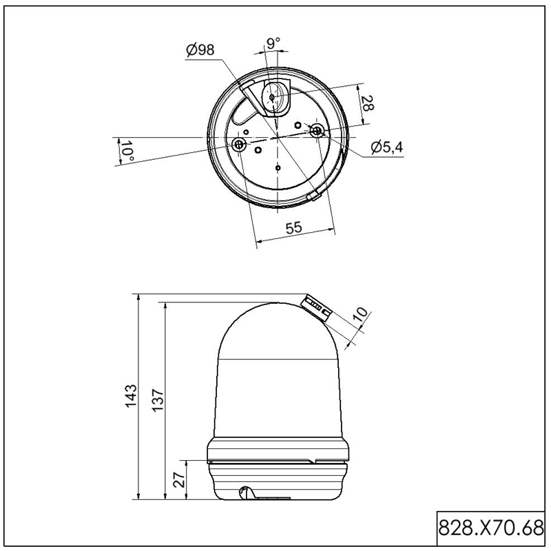 Feu à éclats RM; Tension: 230V AC; Source de lumière: Xénon; Forme du signal: Éclair; Fréquence de flash: env. 1Hz; Puissance du flash: 5 J; Couleur de lumière: Blanc; Couleur de la calotte: Transparent; Fixation: Montage à plat; Raccordement: Bornes à vis; Diamètre: 98 mm; Hauteur: 137 mm; Couleur du boîtier: Noir; Catégorie de protection: IP65; Plage de température: -20°C...+45°C; Série: 828