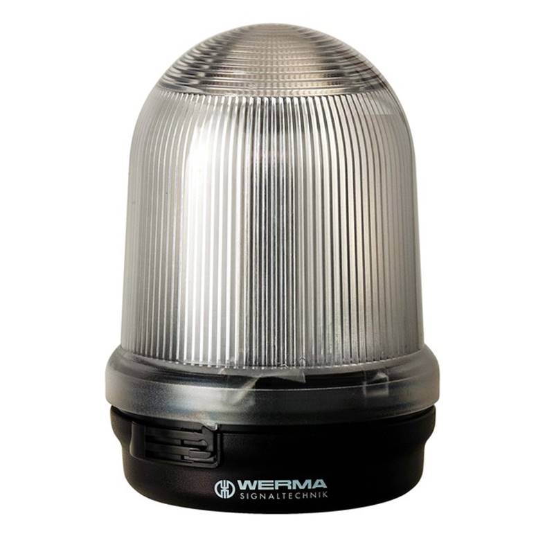 Feu tournant; Tension: 24V DC; Source de lumière: LED; Forme du signal: Feu tournant; Couleur de lumière: Blanche; Couleur de la calotte: Transparente; Fixation: Fixation sur sol; Raccordement: Bornes à vis; Diamètre: 98 mm; Hauteur: 137 mm; Catégorie de protection: IP65; Plage de température: -20°C...+50°C