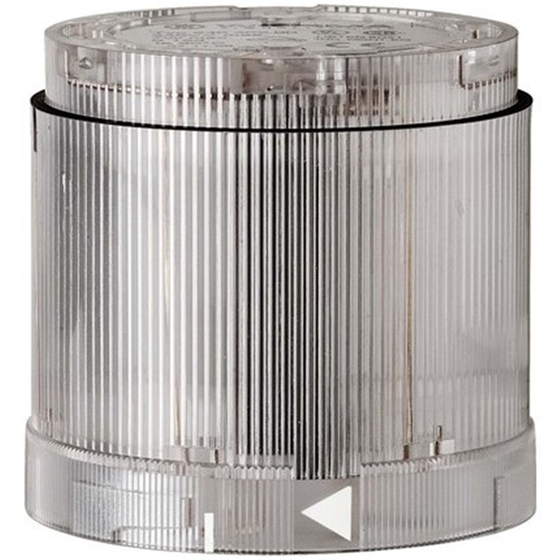 Élément feu permanent; Tension: 24V AC/DC; Source de lumière: LED; Forme du signal: Feu permanent; Couleur de lumière: Blanche; Couleur de la calotte: Transparente; Diamètre: 70 mm; Hauteur: 65.5 mm; Catégorie de protection: IP54; Plage de température: -20°C...+50°C; Série: KombiSIGN 70; L'utilisation de LEDs permet une longue durée de vie pouvant aller jusqu'à 50 000 h; Quatre LEDs génèrent un effet lumineux très clair; Signalisation clairement perçue également dans des conditions défavorables
