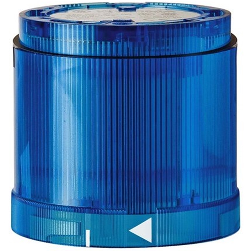 Élément feu clignotant; Tension: 24V AC/DC; Source de lumière: LED; Forme du signal: Feu clignotant; Fréquence de clignotement: env. 1Hz; Couleur de lumière: Bleue; Couleur de la calotte: Bleue; Diamètre: 70 mm; Hauteur: 65.5 mm; Catégorie de protection: IP54; Plage de température: -20°C ... +50°C; Série: KombiSIGN 70