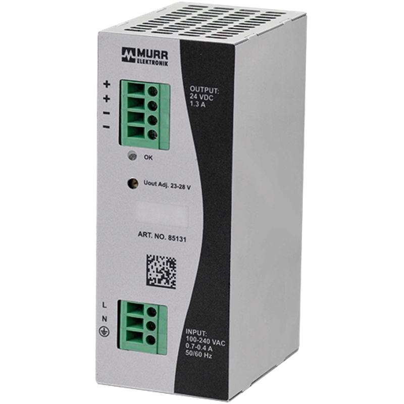 Alimentation à découpage; Type: 1 phase; Tension d’entrée: 100...240 V AC; Courant d’entrée: 0.7 A (100 V AC); 0.4 A (240 V AC); Fréquence: 50...60 Hz; Tension de sortie: 24 V DC ±1%; réglable 23...28 V; Courant de sortie: 1.3 A (+40 °C); 1.0 A (+55 °C); Type de raccordement: Bornes à vis; Mode de fixation: A enclipser sur rail DIN TH35 (EN 60715); Dimensions (H x L x P): 125 mm x 50 mm x 72 mm; Degré de protection: IP20; Plage de température: 0...+40 °C, ...+55 °C derating (temp. de stockage -20...+85 °C); Série: Eco-Rail-2