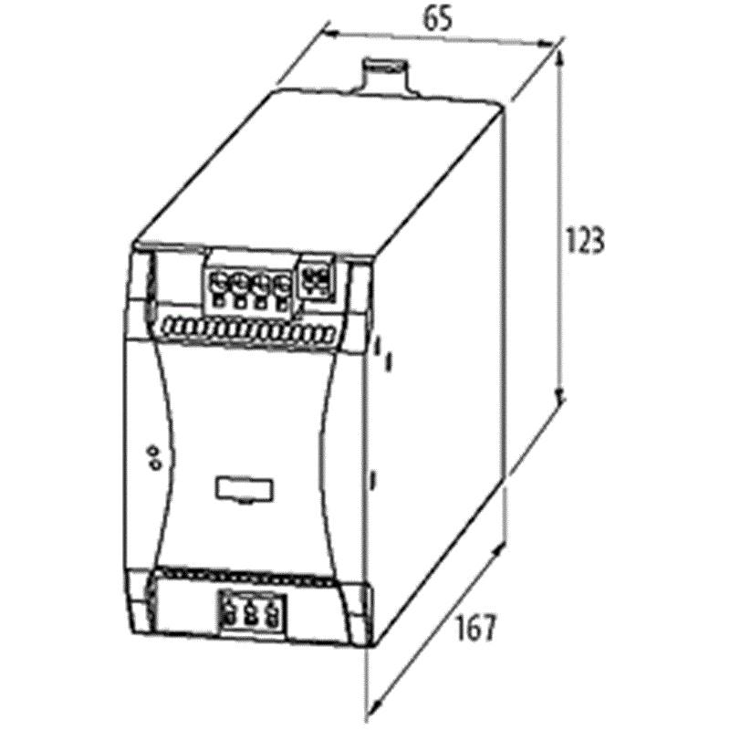 Alimentation à découpage; Type: 3 phases; Tension d’entrée: 324...572 V AC / 450...745 V DC; Courant d’entrée: 1.3 A (3× 360 V AC); 1.0 A (3× 500 V AC); Fréquence: 50...60 Hz; Tension de sortie: 24 V DC (SELV), ±1%; réglable 24...28 V; Power Boost: Iout N × 150% (min. 5 s); Courant de sortie: 15 A (70 °C); 20 A (60 °C); 24 A (45 °C); Fonctionnement en parallèle/en série: max. 5 unités/max. 2 unités; Raccordement: Bornes à ressort enfichable à enfoncer; Dimensions (H x L x P): 143 m x 65 mm x 167 mm; Mode de fixation: à enclipser sur rail DIN TH35 (EN 60715); Degré de protection: IP20; Plage de température: -40...+60 °C, ...+70 °C derating (temp. de stockage -40...+80 °C); Série: Emparro