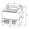 Transformateur de sécurité monophasé; Puissance nominale: 250 VA; Tension d’entrée: 230/400 VAC; Fréquence: 50...60 Hz; Tension de sortie: 24 VAC (SELV); Classe d’isolement: T 40/B; Mode de raccordement: Bornes à vis; Dimensions (H x L x P): 102 x 96 x 108 mm; Cotes de fixation (a x b x c): 86.5 x 84 x 4.8 mm; Ø perçage: 4.8 x 8.4 mm; Mode de fixation: Fixation par trous oblongs et à enclipser sur rail DIN TH35 (EN 60715); Degré de protection: IP20; Plage de température: -20...+40 °C, sans condensation; Série: MTS