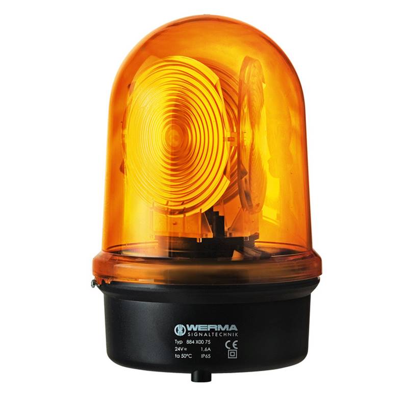 Feu de signalisation tournant; Tension: 230V AC; Forme du signal: Autour; Couleur: Orange; Source de lumière: Ampoule halogène; Fixation: Fixation sur sol; Raccordement: Bornes à vis; Diamètre: 156 mm; Hauteur: 218 mm; Couleur de la calotte: Orange; Couleur du boîtier: Noir; Catégorie de protection: IP65; Plage de température: -30°C...+50°C; Contenu de la livraison: Ampoule incluse G6.35 35 W; Visibilité optimale surtout lorsque les conditions sont mauvaises grâce aux 3 lentilles à effet Fresnel; Très longue durée de vie grâce à l'entraînement par galet; Résistance aux chocs jusqu'à 20 Joules