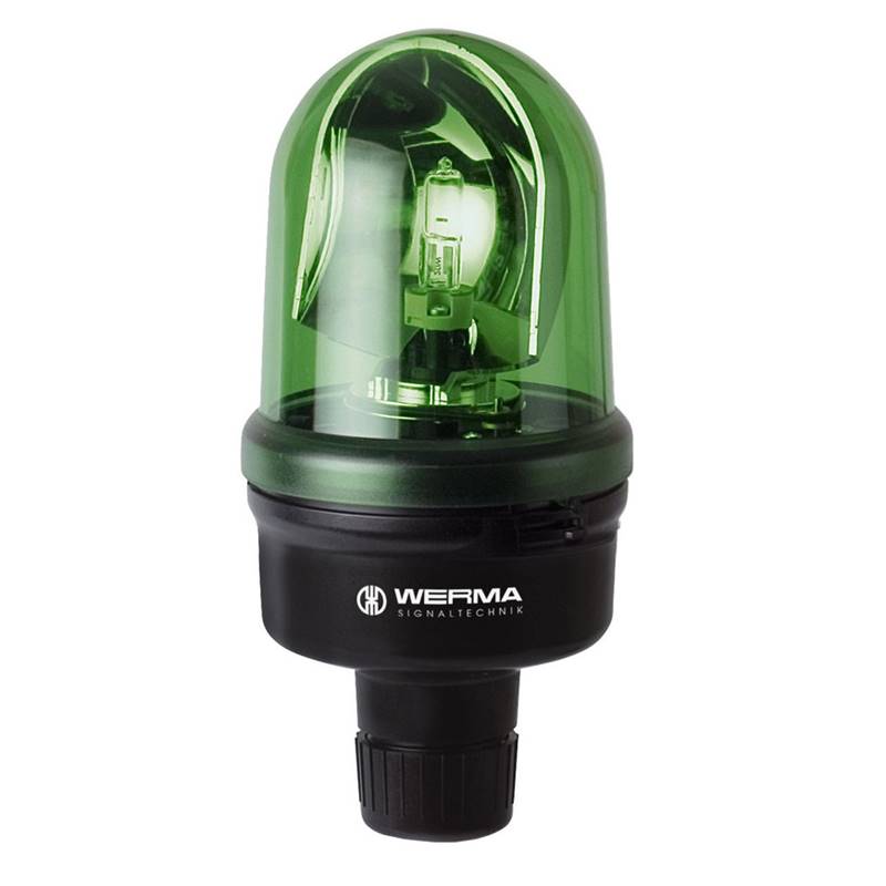 Gyrophare; Tension: 24V AC/DC; Forme du signal: Autour; Couleur: Vert; Source de lumière: Ampoule halogène; Fixation: Fixation sur tube; Raccordement: Bornes à vis; Diamètre: 98 mm; Hauteur: 200 mm; Catégorie de protection: IP65; Plage de température: -30°C...+50°C; Contenu de la livraison: Ampoule incluse (Halogen 20W); Fixation sur tube Ø 25 mm et 1/2 NPT; Toutes les fonctionnalités d'un feu tournant dans une forme compacte