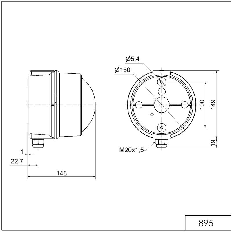 Feu permanent BWM 12-230VAC/DC; Tension: 12 - 230V AC/DC; Forme du signal: feu permanent; Couleur: transparent; Douille: E 27; Lampe: max. 25 W; Fixation: fixation sur sol/sur équerre; Raccordement: système de serrage sans vis, 1,5 mm² max., fil unique; Diamètre: 150 mm; Hauteur: 168 mm; Profondeur: 148 mm; Matière du boîtier: PC/ABS-Blend; Catégorie de protection: IP65; Plage de température: -30°C...+50°C; Contenu de la livraison: Ampoule non incluse; Feu de signalisation de grande taille avec effet lumineux très efficace