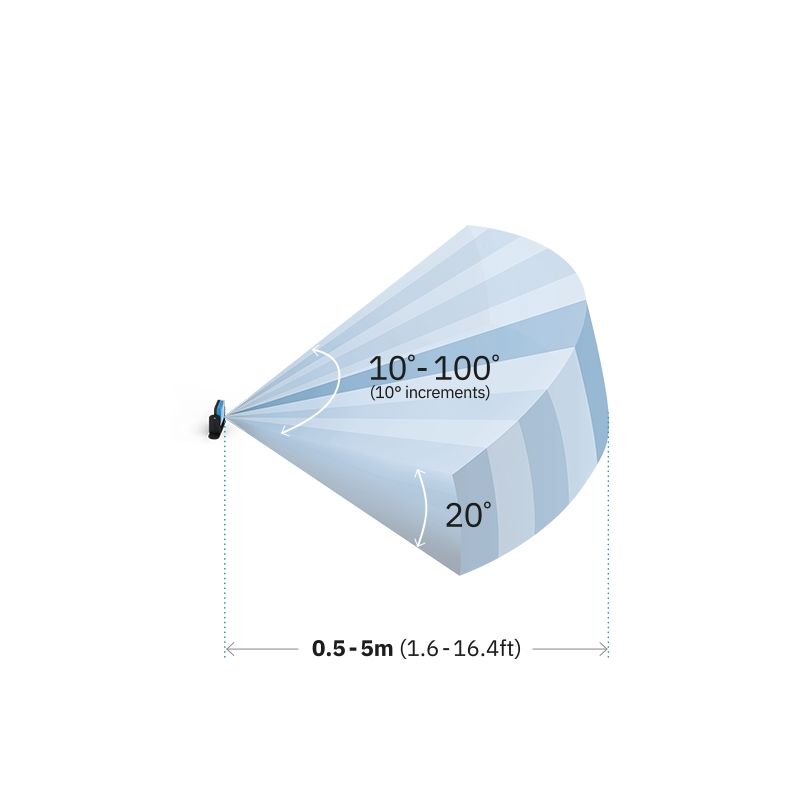 Smart Sensor 200 SERIES - 60GHz Radar 5m Symmetrical FOV; Fréquence: Ondes millimétriques V-Band: 60 GHz; Raccordement: Deux connecteurs M12 à 5 broches (1 mâle et 1 femelle); Résistance de terminaison du bus CAN: 120 Ohm (non fourni, à installer avec connecteur de terminaison); Alimentation: 12 V dc ± 20%, via l'unité de contrôle; Consommation électrique: 2,8 W; Matériau du boîtier:- Capteur: PA66 (avant) + Aluminium (arrière)- Support: PA66 et fibre de verre (GF); Degré de protection: IP67; Température de fonctionnement: -30 ... +60 °C (-22 ... +140 °F)