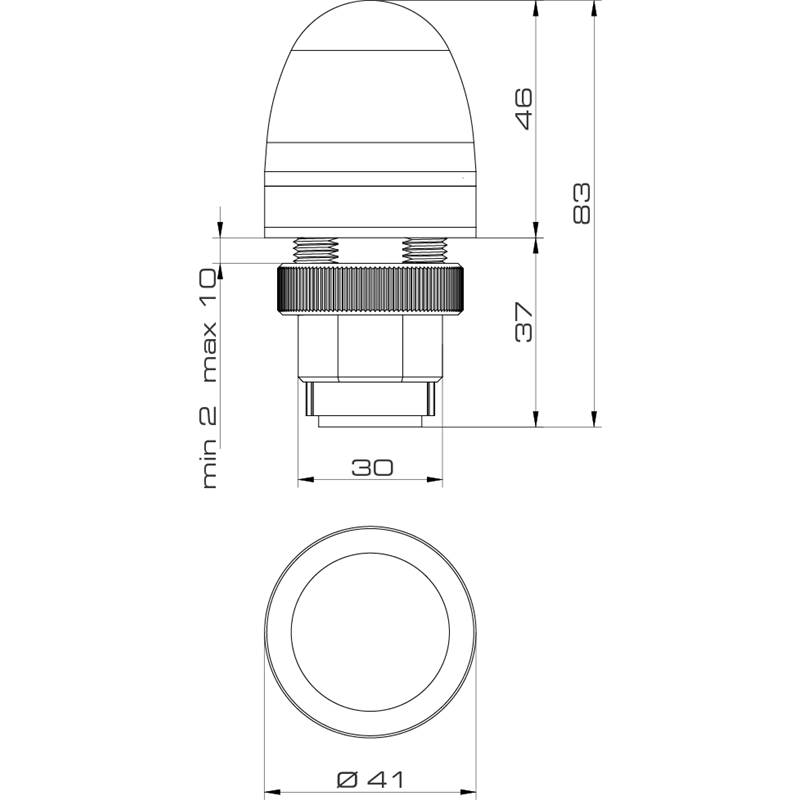 Feu LED multicolore flash P40 RGA FLASH V12/24DAC IP66 Ø40mm GRIS