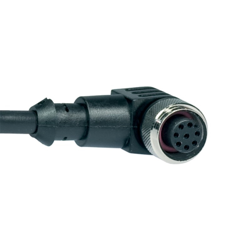 Connecteur / Câble de raccordement; Type: Câble de connexion, M12 x 1; Raccordement A: Connecteur M12, femelle, coudé, 8 pôles, codé A; Raccordement B: Extrémité de câble libre; Câble: 5 m, 8 fils (8 x 0.21 mm²), PVC, noir; Blindage: Non blindé; Compatible chaine porte-câble: Oui; Corps de poignée: Plastique, TPU, noir; Matériau de l'écrou-raccord: Métal, V4A; Tension de mesure: max. 30 V; Charge électrique: 2 A; Degré de protection: IP65, IP67, IP69K; Température de service: -25 ... +90 °C; Température de service (câble, fixe): -30 ... +105 °C; Température de service (câble, en mouvement): -10 ... +105 °C