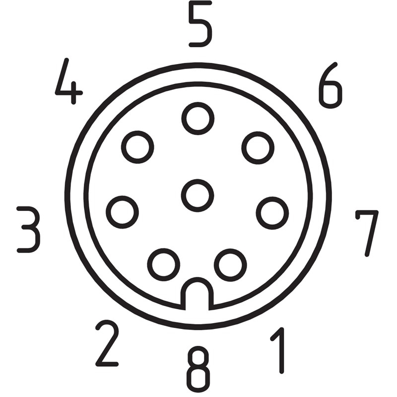 • Raccordement A: Connecteur M12, femelle, coudé, 8 pôles, codé A