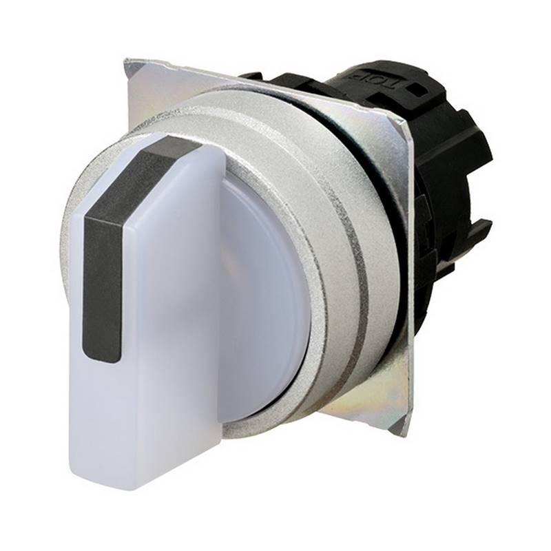 Sélecteur A22NZ Ø22mm, 3 positions, Lumineux, Manuel, Couleur Blanc, Colerette aluminium brossé