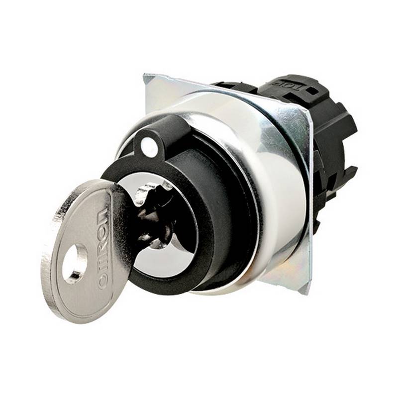 Sélecteur A22NZ Ø22mm, Type à clés, 3 positions, Manuel, A relâchement position Gauche, Colerette métal brillant