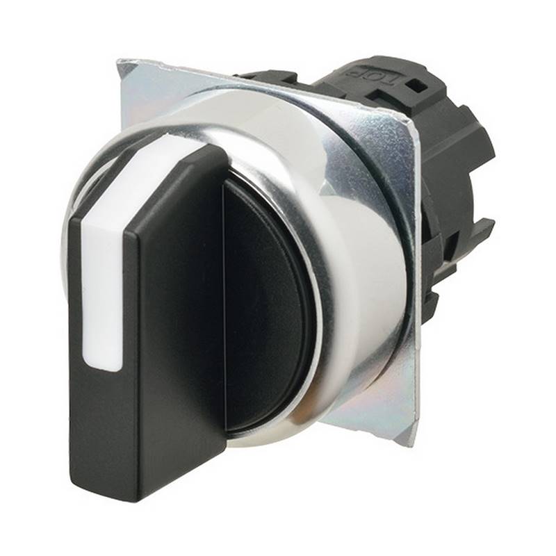 Sélecteur A22NZ Ø22mm, 3 positions, Non lumineux, AUTO RESET ON Droite, Couleur Noir, Colerette métal brillant