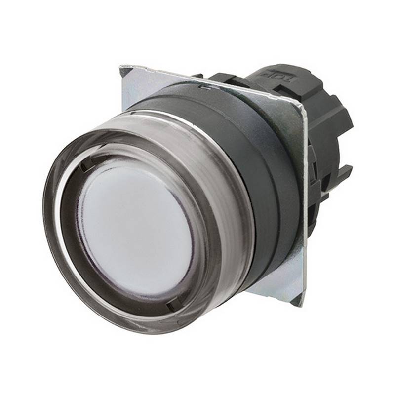 Bouton poussoir A22NZ Ø22, lentille plastique, Protégé, Momentané, Couleur bouton Blanc transparent,