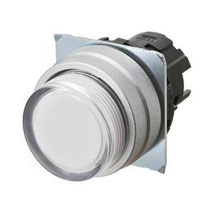Bouton poussoir A22NZ Ø22, lentille Métal brossé métal, Dépassant, Momentané, Couleur bouton Blanc transparent, Lumineux