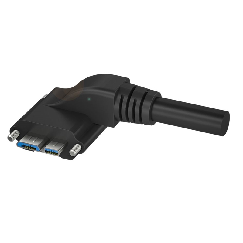 Connecteur / Câble de raccordement, Raccordement A: Connecteur USB 3.0 MicroB, mâle, coudé AC14, 10 pôles, vis de verrouillage, Raccordement B: Connecteur USB 3.0 Standard A, mâle, droit, 9 pôles, Câble: PVC blindé noir, 3 m, Nombre de conducteurs: 8, Température de câble, pose fixe: 10...80 °C, Classe de protection: IP20