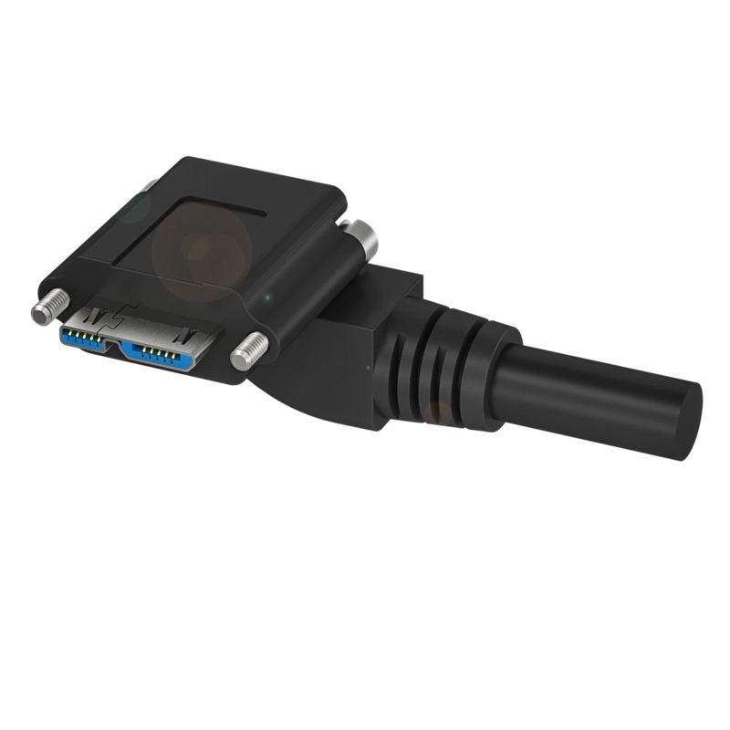 Connecteur / Câble de raccordement, Raccordement A: Connecteur USB 3.0 MicroB, mâle, coudé AC12, 10 pôles, vis de verrouillage, Raccordement B: Connecteur USB 3.0 Standard A, mâle, droit, 9 pôles, Câble: PVC blindé noir, 5 m, Nombre de conducteurs: 8, Température de câble, pose fixe: 10...80 °C, Classe de protection: IP20