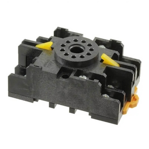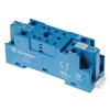 Support 10A 250V, température ambiante -40° à 70°C, pour série 5534, de couleur bleue, raccordement bobine et contacts séparé, étrier plastique, bornes à cage, montage sur panneau ou rail 35mm
