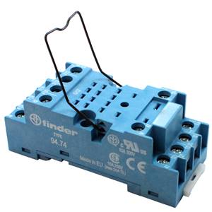 Support 10A 250V, température ambiante -40° à 70°C, pour série 5534, de couleur bleue, raccordement bobine et contacts séparé, étrier métallique, bornes à cage, montage sur panneau ou rail 35mm