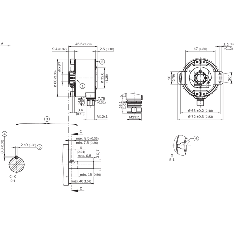 • Codeur version monotour ou multitours avec interface SSI et Sin/Cos