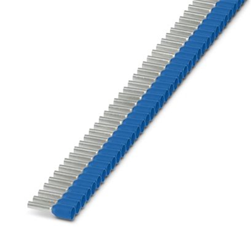 Embout de câblage avec collerette isolante, section : 0,75 mm², longueur du fût : 8 mm, coloris : bleu, 10 bandes de 50 pièces, idéal avec la pince CRIMPFOX 4IN1