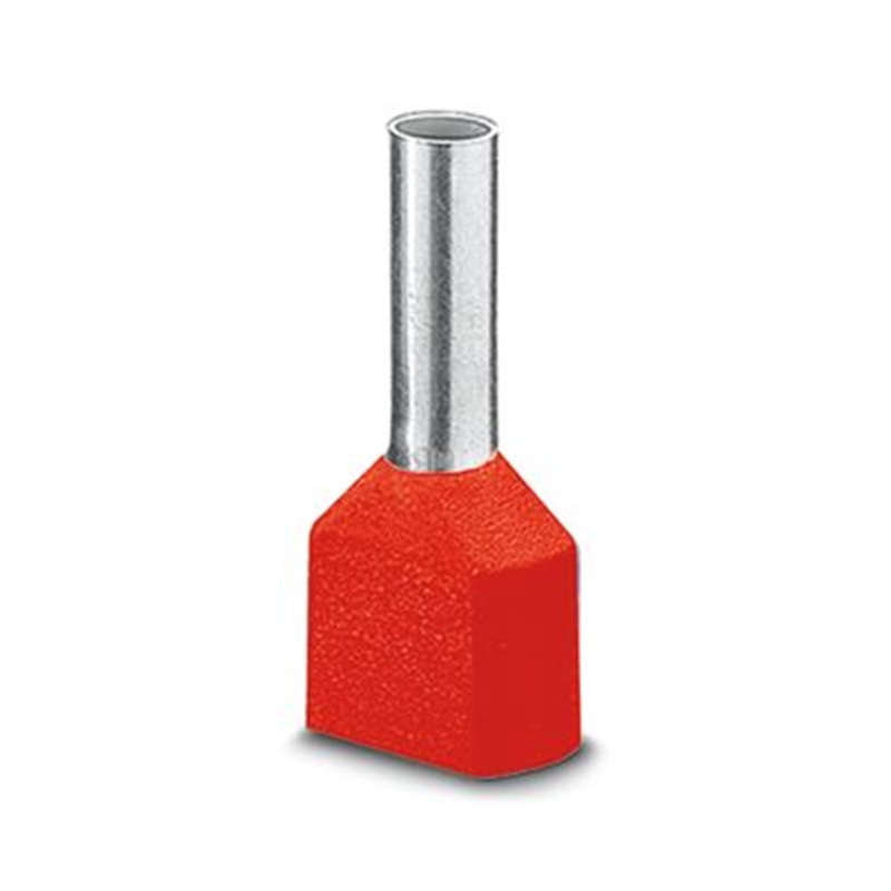 Embout de câblage double avec collerette isolante, section : 2X10 mm², longueur du fût : 14 mm, coloris : rouge, 100 pièces