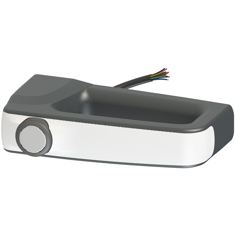 Poignée de sécurité; Poignée: Poignée blanche lumineuse avec LED RVB multicolore; Type de fixation: Directement sur la poignée avec des inserts filetés; Dispositifs de commande: Avec bouton à impulsion 1NO couleur blanche avec éclairage; Codification RFID: Sans RFID; Raccordement: Câble PVC IEC 60332-1-2 résistant à l'huile, longueur 3 m; Sens de sortie des connexions: Sortie arrière; Degré de protection: IP65 selon EN 60529; Température ambiante: -20 ... +50°C; Série: P-KUBE Smart
