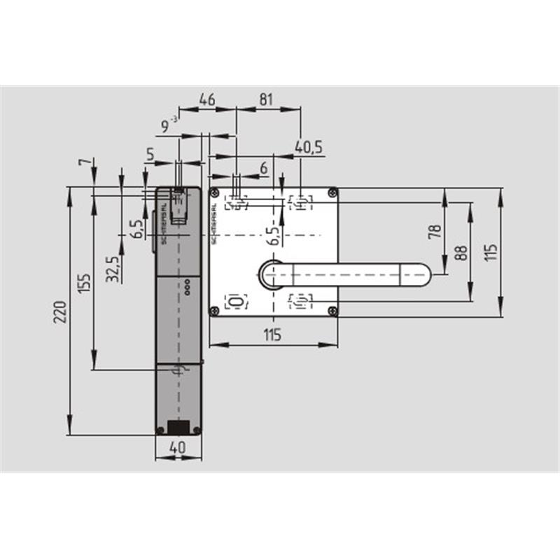 Poignée pour interrupteur de sécurité avec actionneur séparé; Charnière de porte: Droite; Mécanisme monté: À l'extérieur; Déverrouillage de secours: Oui; Force de retenue conforme à la norme EN ISO 14119: 2 000 N; Force de retenue, max.: 2 600 N; Dimensions de l'actionneur (L x l x H): 60 mm x 115 mm x 115 mm; Matériau du boîtier: Plastique, thermoplastique renforcé de fibres de verre; Matériau de l'actionneur: Zamac injecté; Matériau de l' élément d'actionnement: Aluminium, revêtement plastique; Matériau du déverrouillage de secours: Métal, gaine plastique