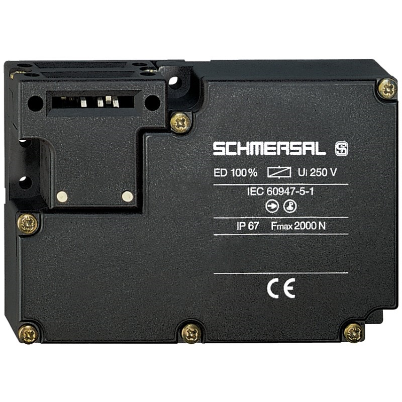 Interverrouillage de sécurité avec actionneur séparé; Niveau de codage selon ISO 14119: Faible; Mode d’action: électromécanique; Ouverture sous tension: Oui; Déverrouillage manuel: Oui; Nombre de directions d'approche: 3; Nombre de contacts auxiliaires: 1; Nombre de contacts de sécurité: 5; Elément de commutation: 1NO+5NF; Principe de commutation: Action lente, contact NF à coupure positive; Matériau des contacts, électriques: Argent; Force de retenue conforme à la norme EN ISO 14119: 2 000 N; Force de retenue, max.: 2 600 N; Force de maintien: 30 N; Actionneur: Non inclus; Tension assignée d'alimentation: 24 VAC/DC; Raccordement: Bornes à ressort; Entrée de câble: 4 conduits, M 16 x 1.5 ; Dimensions (L x l x H): 30 mm x 130 mm x 90 mm; Matériau du boîtier: Plastique, thermoplastique; Etanchéité: IP67 ; Température ambiante: -30 ... +60 °C; Certificats: IFA, cULus, CCC, UKCA; Série: AZM 161